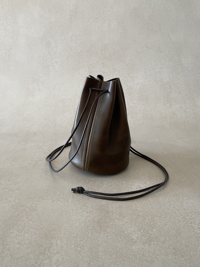 もっちりとしたシボ革の質感と、 巾着を絞ったときに生まれる美しいフォルム。 シンプルでありながら存在感のある、 日常使いにちょうどいい巾着バッグを制作しました。 肩掛け、手持ちの2WAY仕様。 円形のマチ構造で、見た目以上の収納力も備えています。 使うほどに革が馴染み、 自分だけの表情へと育っていくバッグです。 ※本商品は受注生産品となります。 ご注文いただいてから発送まで10〜14日程度お時間を頂戴します。