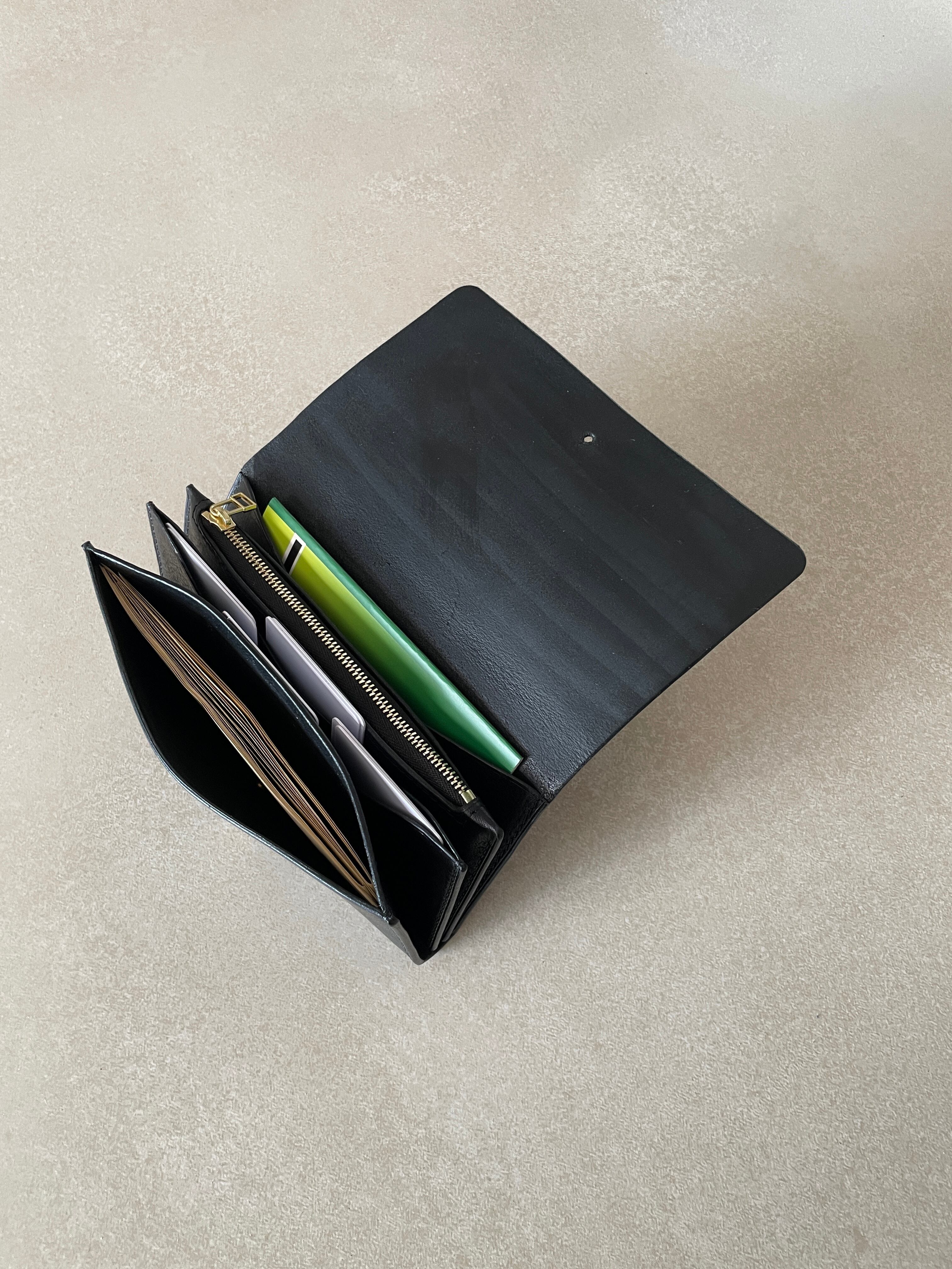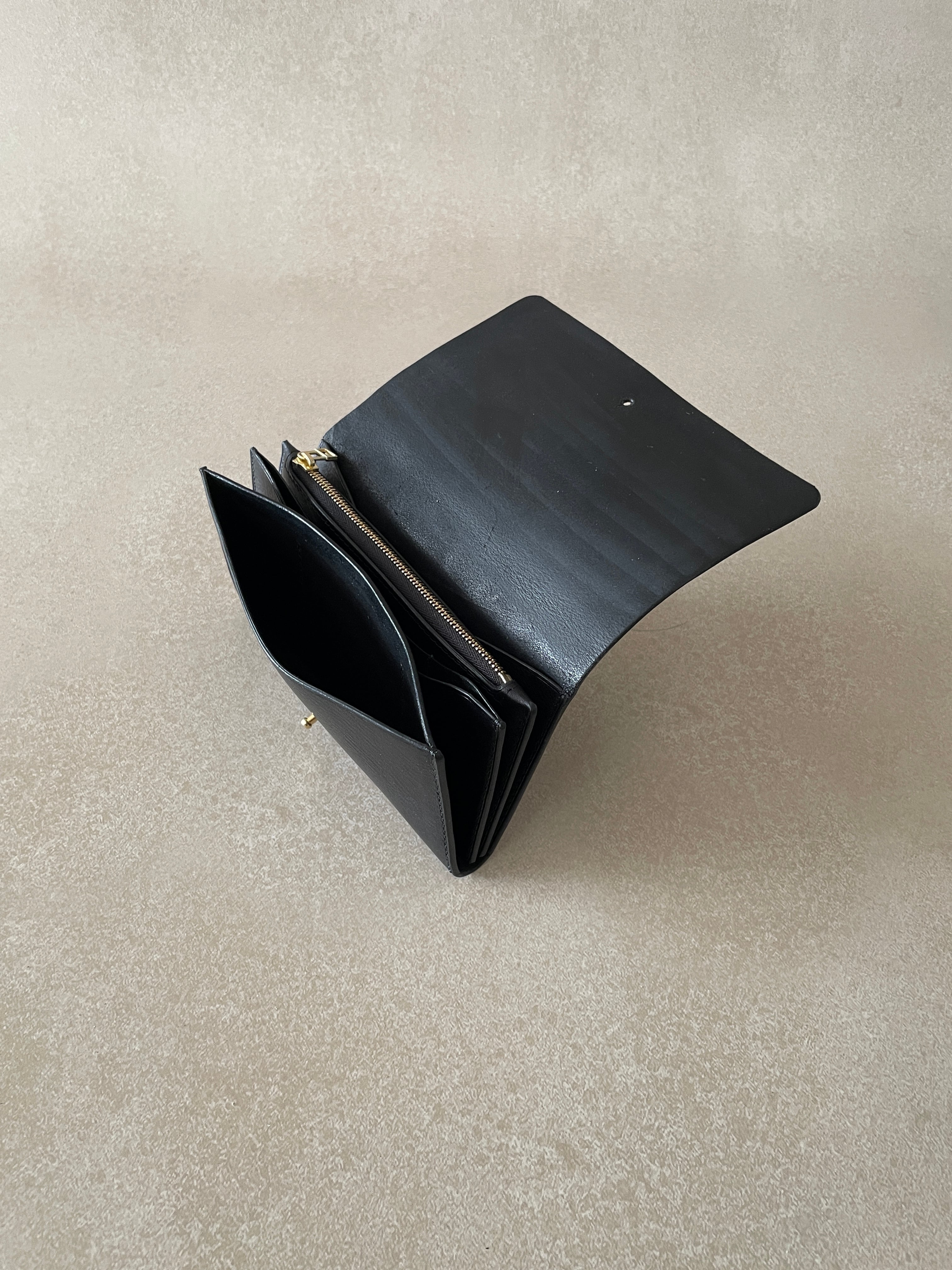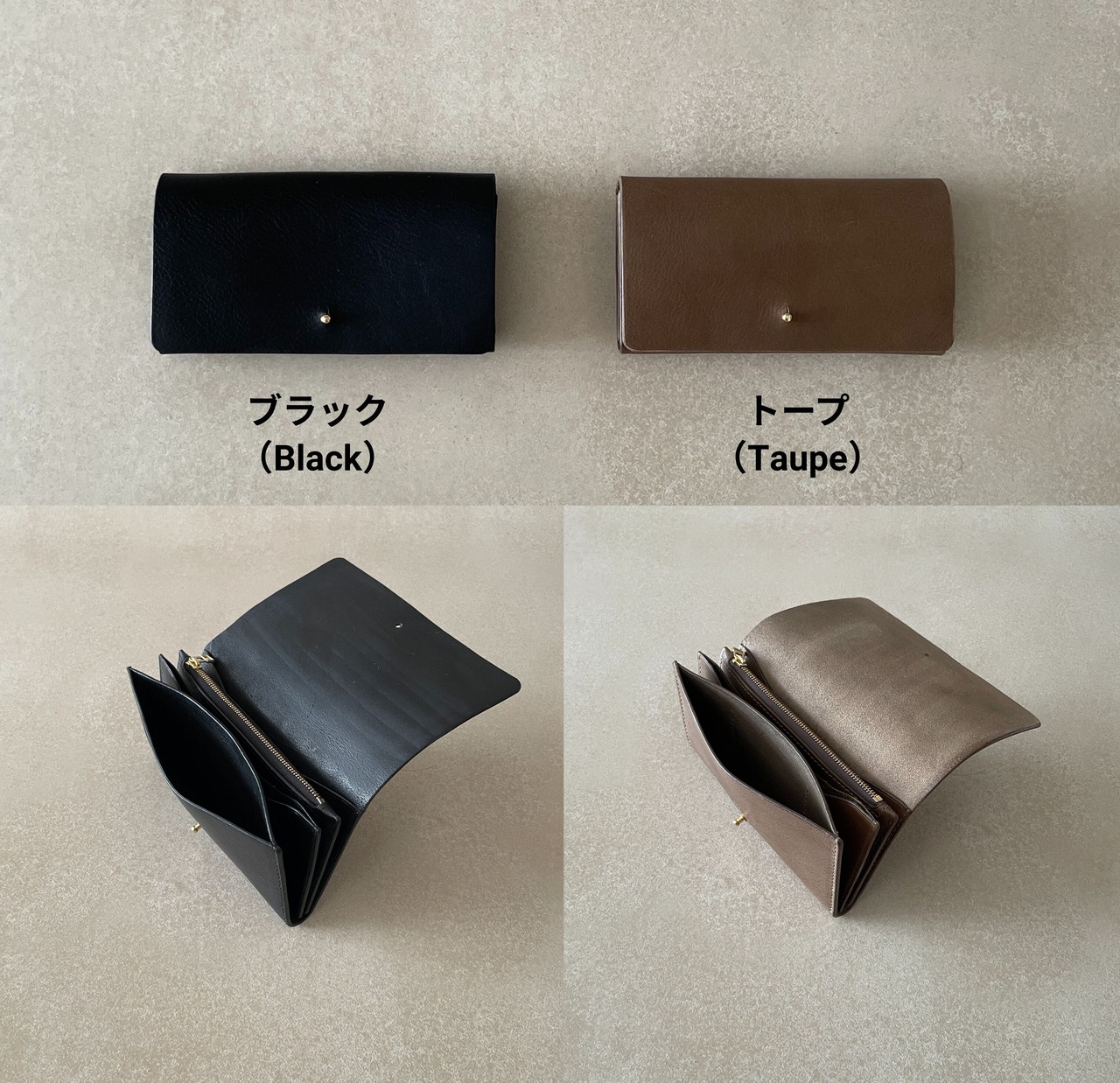 ギボシ留めを採用した、シンプルな構造の長財布です。