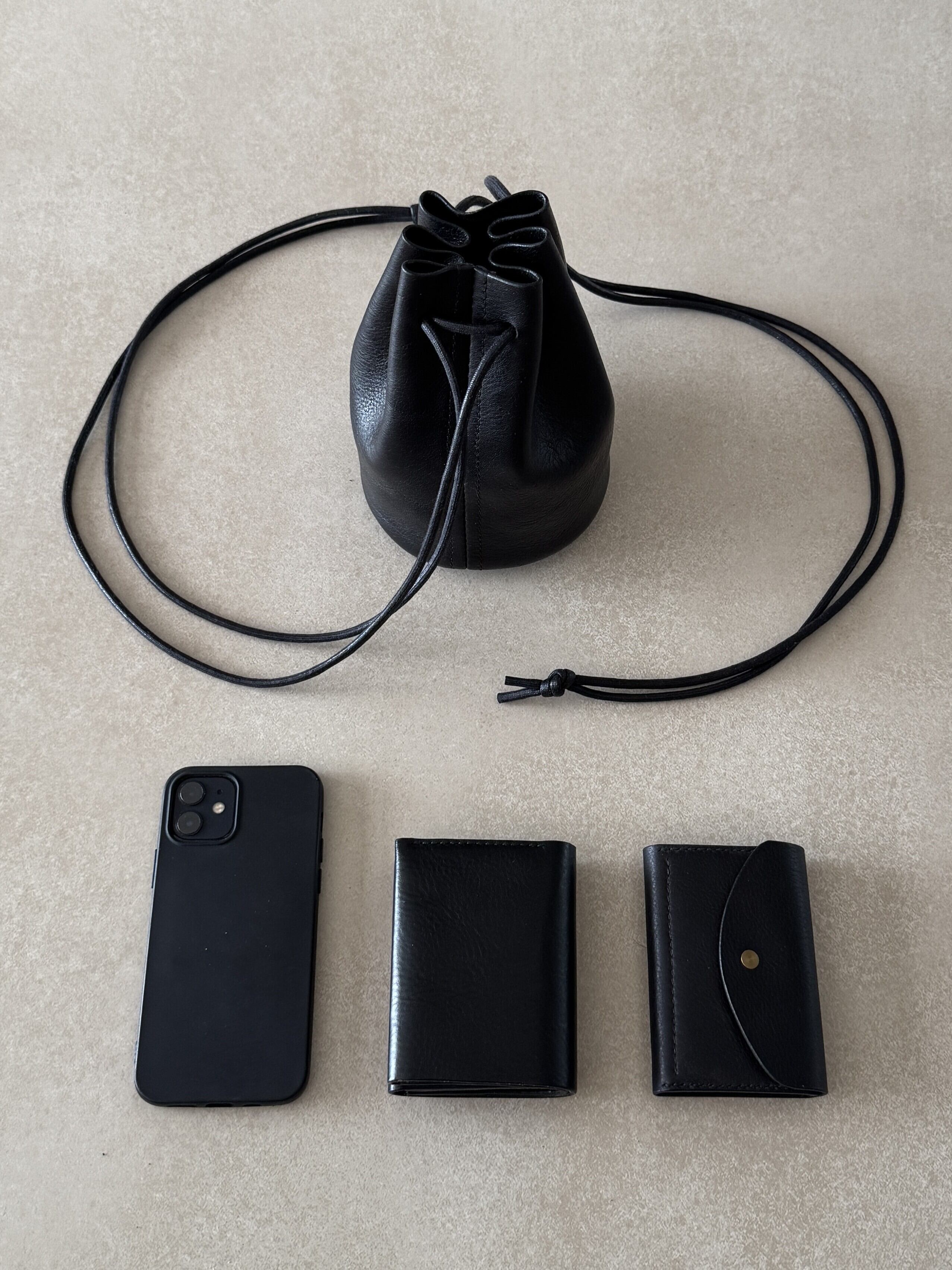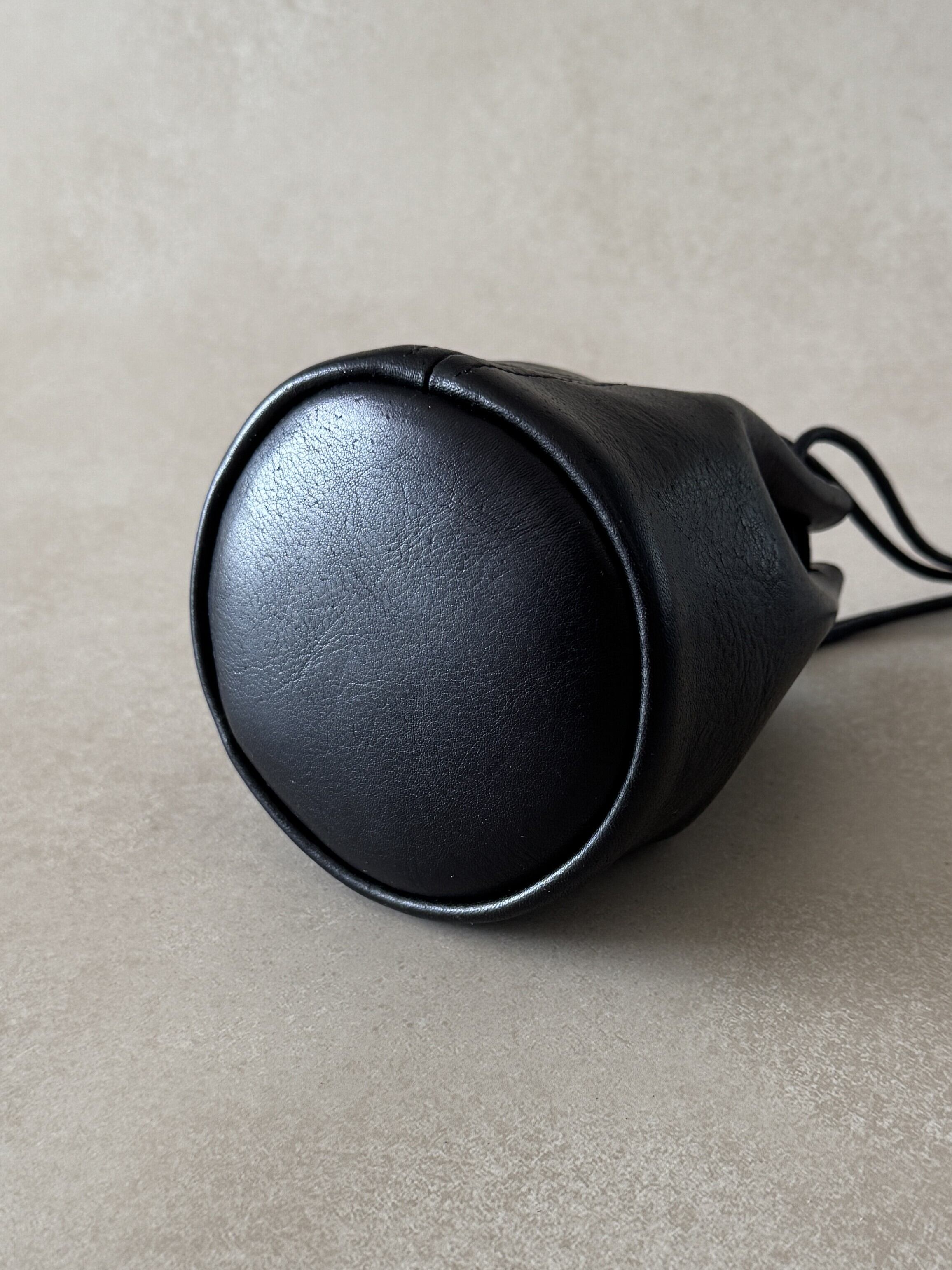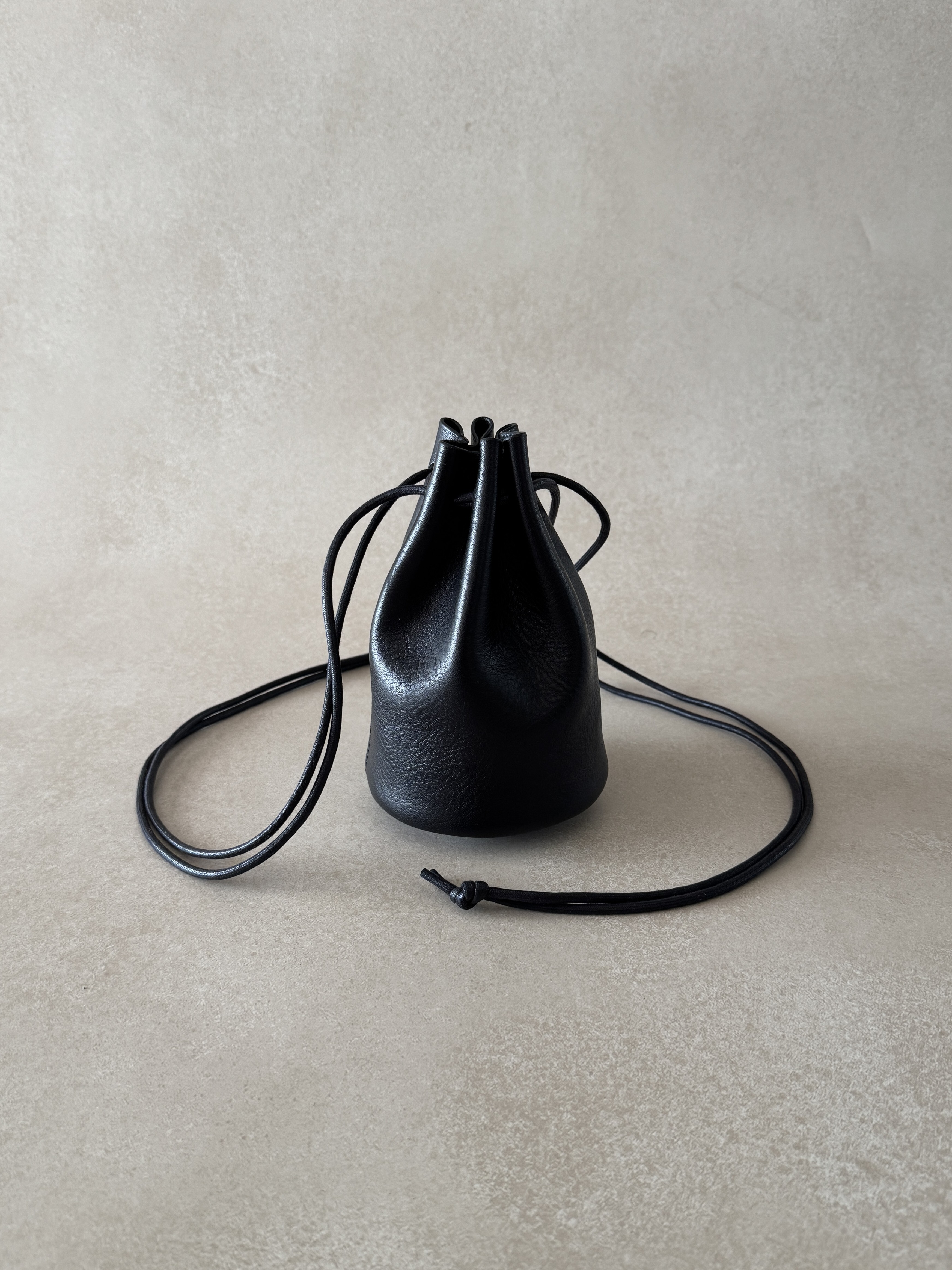 もっちりとしたシボ革が生む、コンパクトで美しい巾着フォルム