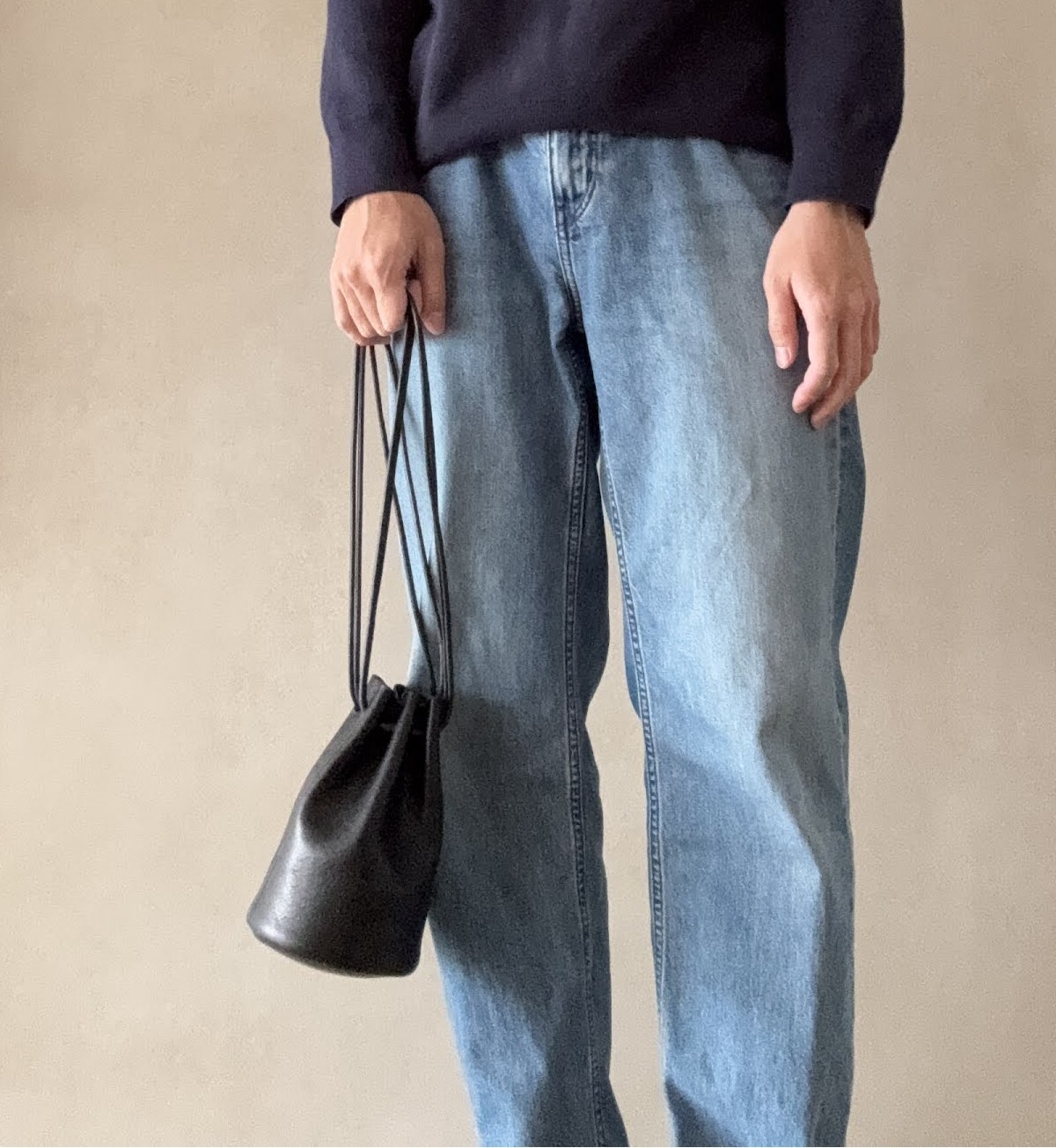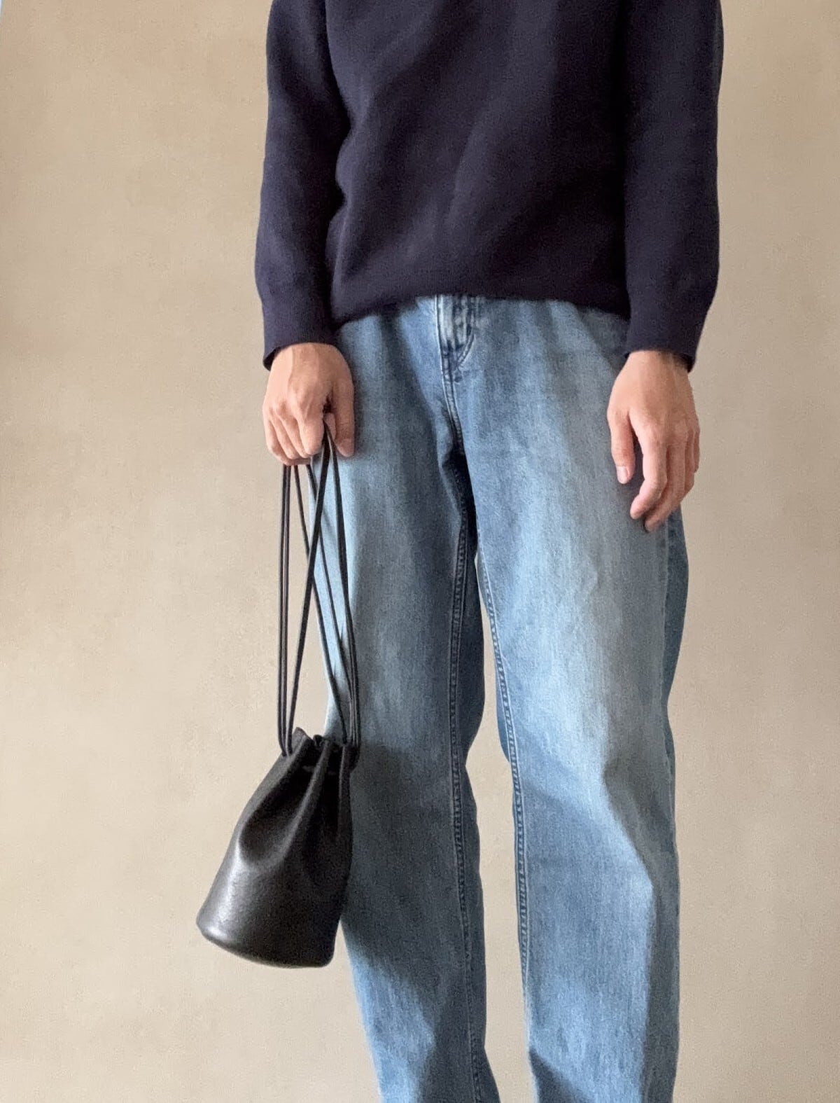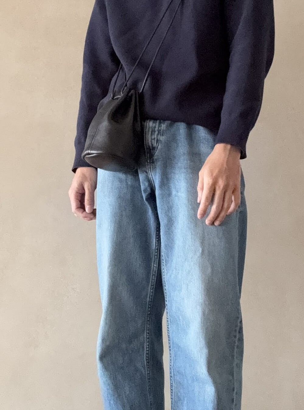 もっちりとしたシボ革が生む、コンパクトで美しい巾着フォルム